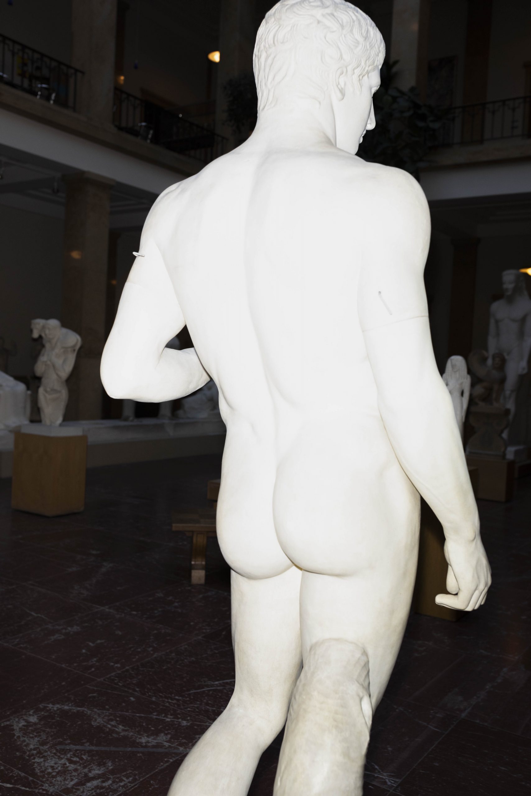 "the beauty & the boys" is a project about the representation of the male body. The work questions whether the depiction of a softer masculinity is a visual innovation or just old news in a new guise. By questioning the ways in which the male body is portrayed, misogynistic structures in imagery can be highlighted, thereby creating a basis for greater gender equality. In recent years, a homely setting within the male model's own four walls has become increasingly present in advertising, but also in artistic photography. The setting creates a homely atmosphere that evokes an informal naturalness. The poses in the work are borrowed from photographs of male bodies from around 1900. They are static, statuesque and therefore often artificial. The homely setting within one's own four walls is thus reduced to absurdity. At the same time, it can also be observed that although the bodies depicted are often slimmer and more delicate, the poses are less masculine. Nevertheless, the ideal of the masculine-ascetic body is reinforced, if not strengthened. But if the ideal itself is not questioned, is the image of the male body really changing?